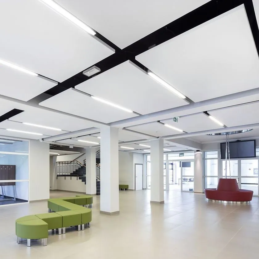 Такие акустические плиты подходят для офисов, школ, магазинов и любого пространства со стандартным модульным потолком. Их удобно монтировать даже в уже эксплуатируемых помещениях.